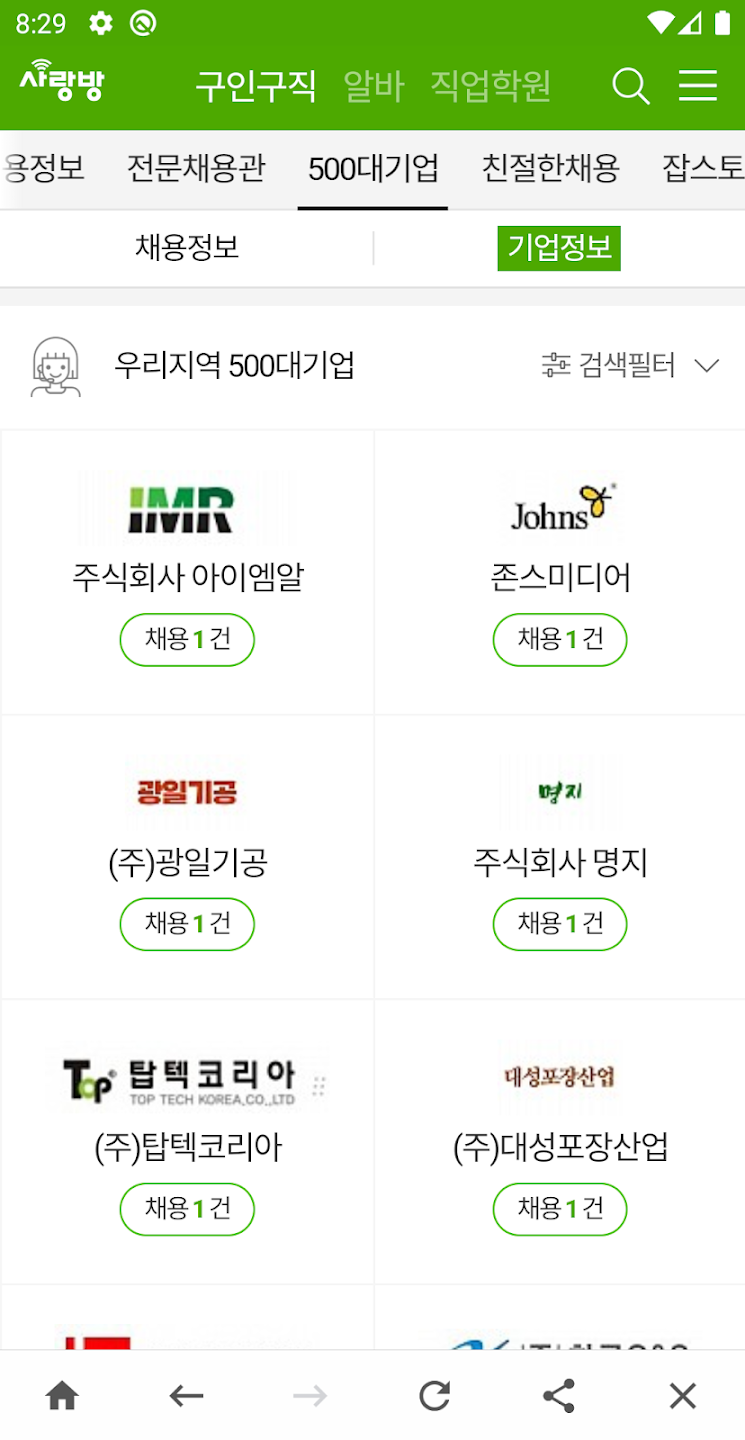 지역 기반 500대 기업 채용 정보