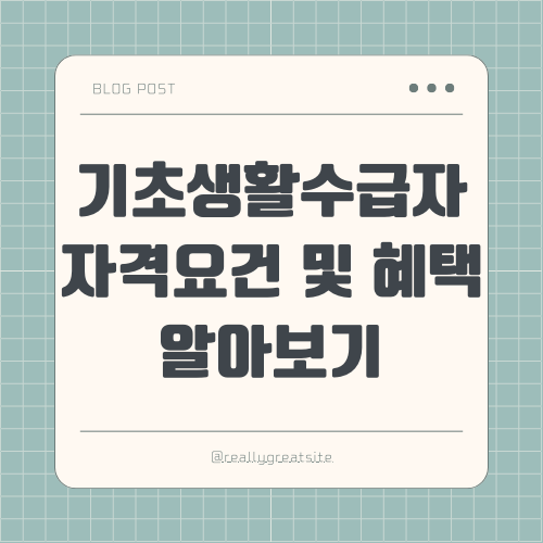 우리 사회에서 가장 어려운 상황에 처한 분들을 돕기 위해 마련된 기초생활수급자 제도는, 생활 안정과 사회적 참여를 촉진하기 위해 정부가 제공하는 혜택입니다. 기초생활수급자의 자격을 얻기 위해서는 월 소득과 재산이 정부 기준에 부합해야 합니다. 자격요건을 충족하는 경우, 생활비 지원부터 교육, 의료, 주거 지원까지 다양한 혜택을 받을 수 있습니다.